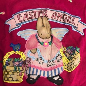 Easter Angel Puffy Paint Graphic Vintage Hanes Heavyweight Medium Red Tee. Single Stitch. Hanes Heavyweight 50/50 tag. Measurements shown of item laid flat. See photos for overall condition and description of this item. Smoke free home.