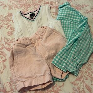 Great preppy Easter bundle! My boy wore this exact outfit for Easter but has outgrown. Teal green button down and vest are Janie & Jack and the pink shorts are crew cut. All are size 2 EUC. These are all listed separately in my closet but save on this bundle