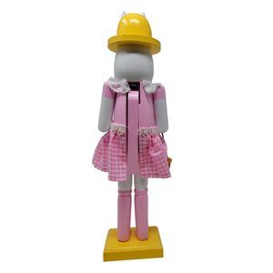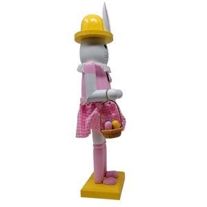 Easter Bunny 15" Nutcracker Wood Pink Gingham Girl with Basket Rabbit