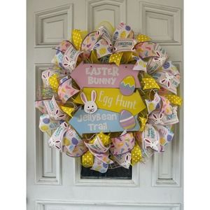 Easter Bunny Jelly Bean Trail Egg Hunt Sign Mesh Ribbon Spring Wreath