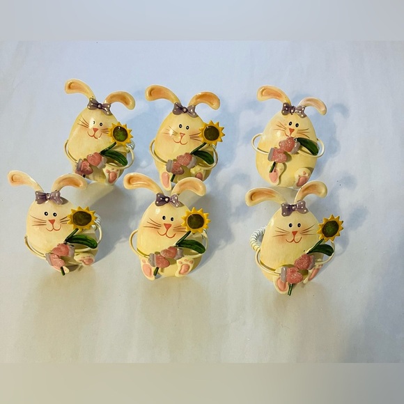 Easter Bunny Napkin Ring Holders Set Of 6 Holiday Spring Metal