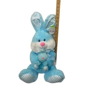 Easter Bunny Rabbit Plush Blue Mom and Baby Stuffed Animal 18" Sitting