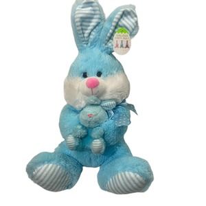Easter Bunny Rabbit Plush Blue Mom and Baby Stuffed Animal 18" Sitting