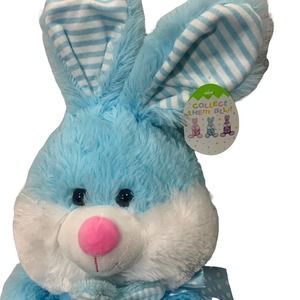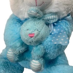 Easter bunny rabbit plush. Blue and white colors, featuring mom and baby rabbit.