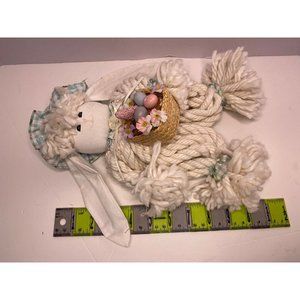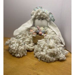 Easter Bunny Rabbit Yarn Shelf Sitter Tabletop Doll White Decor 12” Basket.