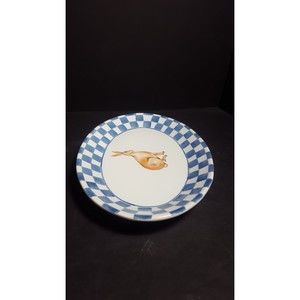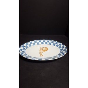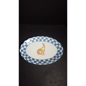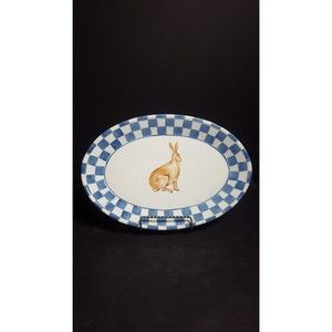 Easter Bunny Rabbit oval serving dish plate Blue Gingham Italian tableware