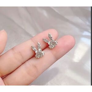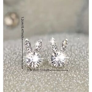 Easter Bunny Rhinestone Stud Earrings Rabbit Design, Simple Alloy Ear Needle