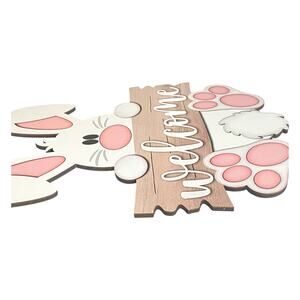 Hop into spring with this sweet Easter bunny welcome sign! Featuring soft neutral wood tones and pastel pink details, this lightweight 12” sign is perfect for: