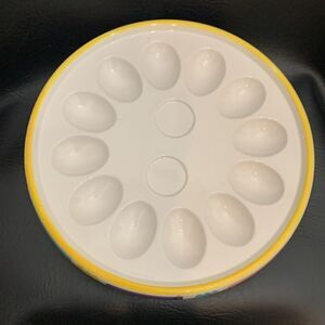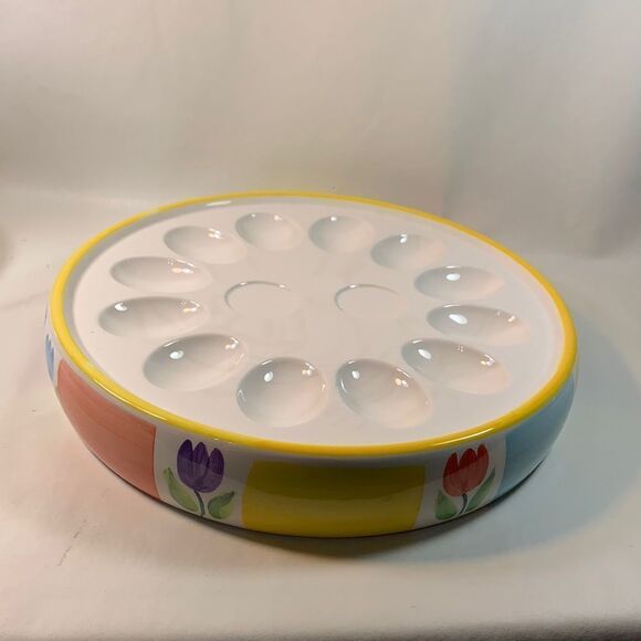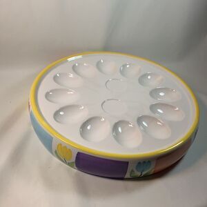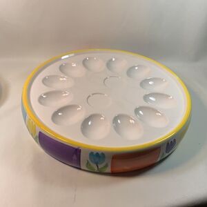 Easter Bunny Devil Egg Serving Tray Spring Flower Vintage Holiday Yellow Purple
