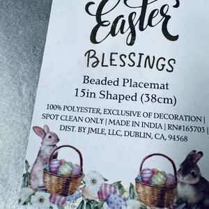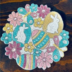 NWT beautiful pastel multicolor beaded floral Easter bunny rabbit and Easter eggs design placemat with satin backing.