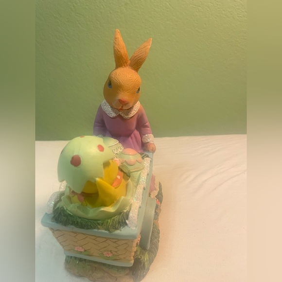 Cute item for Easter. Decor item with a mother bunny pushing her baby. It is in good condition with no visible defects.