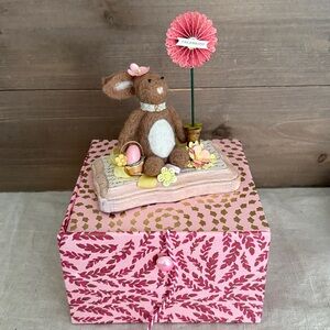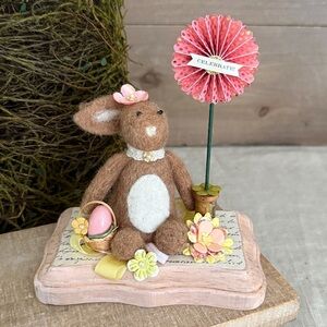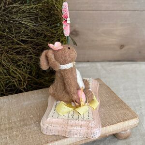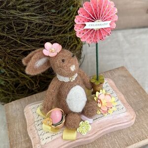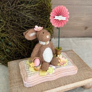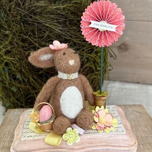 Adorable felted bunny dressed up for the Easter celebration. She comes with a custom box. She would be the perfect addition to your Easter/Spring decor.