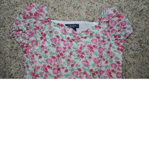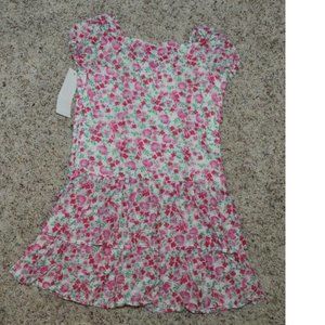 *Easter Dress Chaps sz 5 Pink Short Sleeve Tier Floral Poplin Side Zip Girls