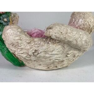 Crafted from an unknown material, possibly resin, the rabbit is designed in a playful pose, lying on its back with a belly ready to be filled with Easter filler and eggs for a festive decorative display. The overall design exudes cuteness, making it a perfect addition to your Easter decor collection.