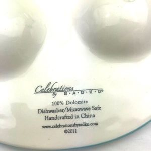 Brand new never used- Easter Egg Holder. Holds 6 eggs. Celebrations by Radio. 100% Dolomite Dishwasher and microwave safe. Handcrafted in China. Great to hold colored Easter eggs in.