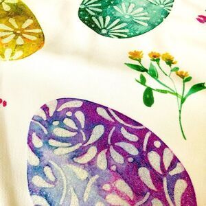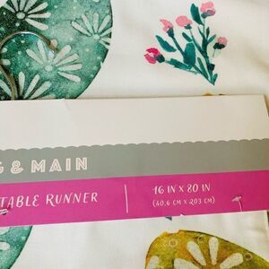 NWT beautiful white and multicolored pastel shimmering glitter Easter egg print fabric table runner. Bright spring color tones and glittery finish as shown in photos. 16”x80”.