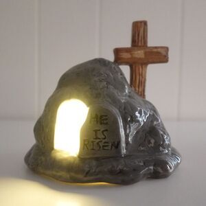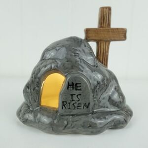 Easter "He Is Risen" Light Up Rock with Cross Decor