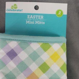 Easter Mini Teal White Pink Colored Oven Mittens MITT 2 Pack Grabbers Hand
