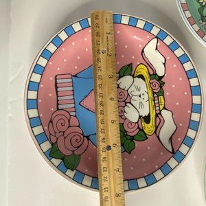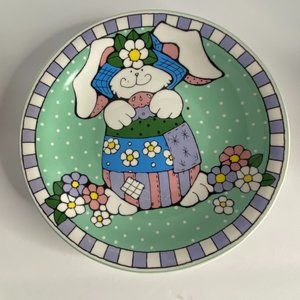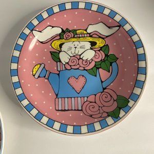 Add a touch of Easter to your table with this set of 3 ceramic dessert plates from Studio 33. Each plate features a colorful Easter Rabbit pattern that is perfect for any Easter occasion. The set includes both dessert plates and salad plates, making it an ideal addition to any plate collection. Whether you're serving up sweets or salads, these plates are sure to impress your guests with their charming rabbit theme.