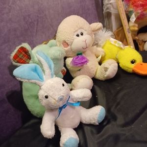 Set of 4 Easter Plush Lamb- Chick- Elephant and Bunny. Various Brands. Sizes range from 4 to 8 inches