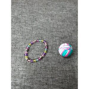 Easter Plush Yellow Bunny Hair Bows Beaded Bracelet & Marble Bouncy Ball Toys