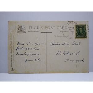 Antique vintage original embossed Easter postcard. Has edge ding, corner creases, and age wear. Posted with 1908 cancel. Stock# eas151.