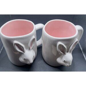 Set of 2. Cutest Bunny Mugs ever! 3D Bunny head. Double sided.