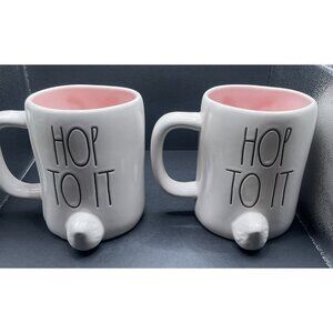 Get ready for Easter with this adorable set of two Rae Dunn 20 oz mugs featuring 3D bunny heads on both sides. Perfect for any occasion, these ceramic mugs are microwave and dishwasher safe and have a capacity of 20 oz. The white and pink color scheme and bunny theme make them a great addition to your Easter decor, but they can be used for all occasions. The Artisan Collection production style and pottery production technique give these mugs a unique and artistic touch. Don't miss out on adding these original, new with tags mugs to your collection!