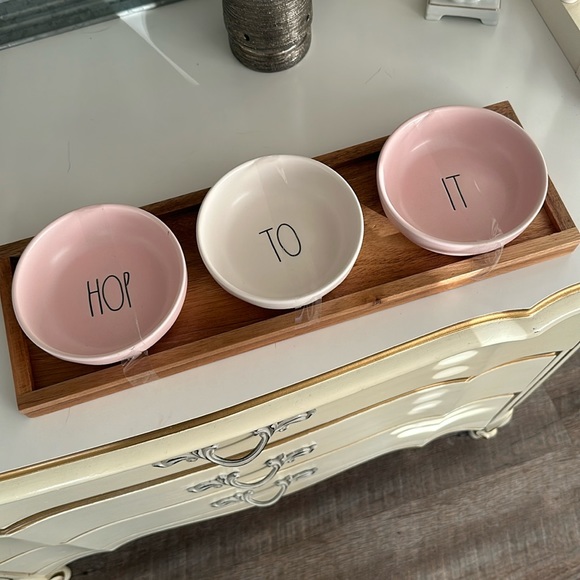 Easter Rae Dunn - Hop To It tray trio Good used conditions as shown.