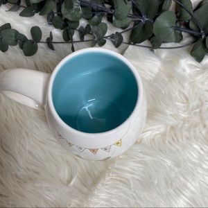 Curved coffee mug. Blue inside.