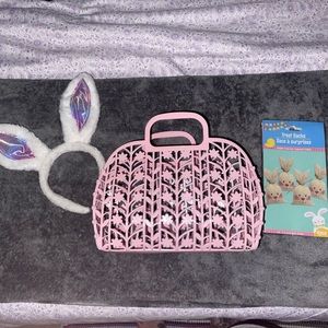 Foldable basket purse, Easter bunny ears, and a unopened gift bag set that are bunnies