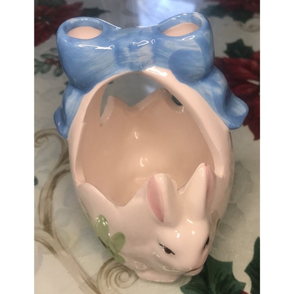 Easter Spring Bunny Rabbit White Ceramic Container Decorative Basket.