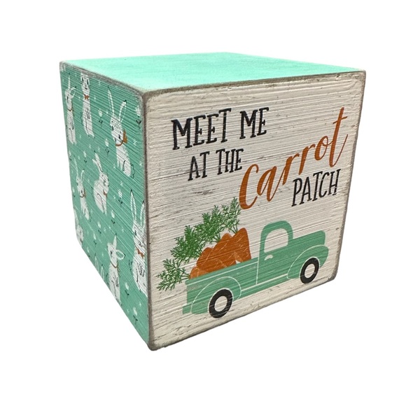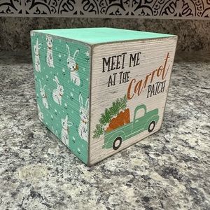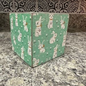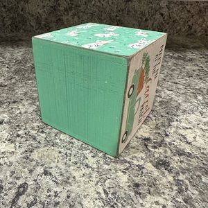 Easter, Spring Decor Wooden Block, Rustic Rabbits, Cube
