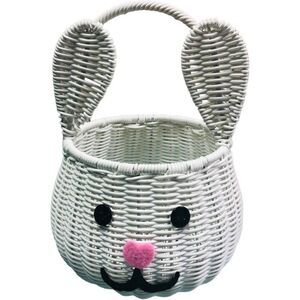 Easter White Wicker Basket with Porcelain Eggs