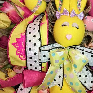 Looking for the perfect Easter Wreath, I got you covered. Transform your home into an Easter wonderland with this delightful and whimsical wreath that captures the essence of springtime joy. This wreath features a cute flocked bunny nestled amidst vibrant spring foliage, creating a scene straight out of a storybook. This charming design is sure to bring smiles to everyone who lays eyes on it.