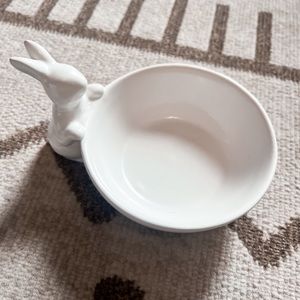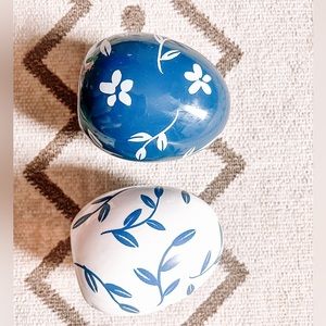 Easter bundle, 2 white & blue glass eggs, 1 white glass bunny candy dish small
