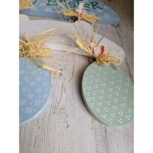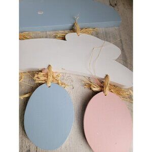 Easter wooden rabbit egg primitive hanging bunny leap sign spring pastel