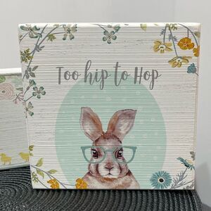 Easter Egg Hunt and Too Hip to Hop Wooden Signs Set of 2 NWT