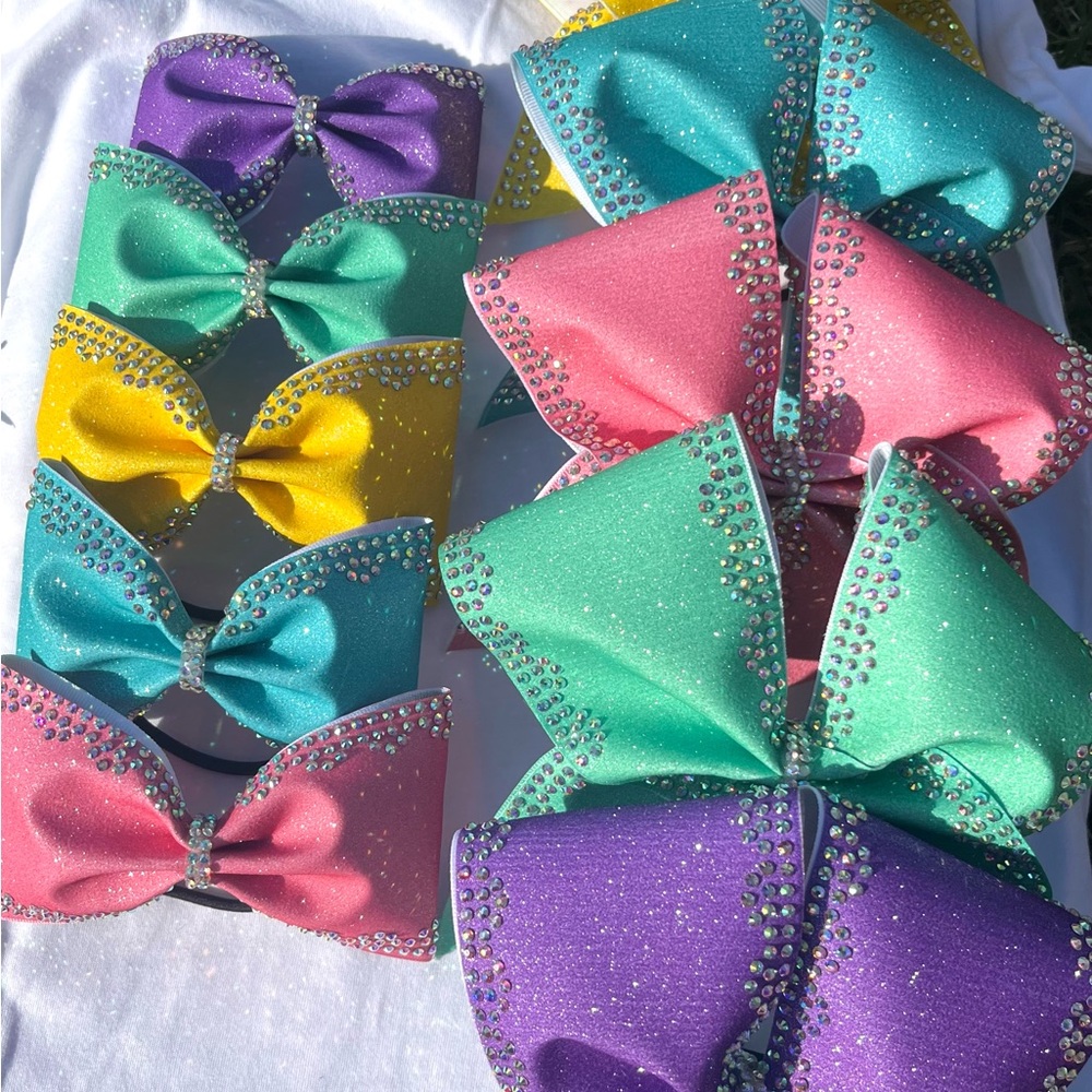 Handmade, rhinestone bows!! Choose from: purple, aqua, green, yellow & pink!