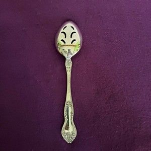 Easterling Valhalla Stainless Flatware Slotted/Pierced Serving Spoon Glossy Scrolls Floral
