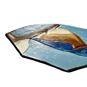 This Eastern Bluebird hand-painted leather 3D embossed unique piece of folk art would make a charming addition to any home decor art collection. The intricate details and primitive design capture the essence of nature and the beautiful Eastern Bluebird, making it a special and handmade item for bird lovers and collectors alike. With its mixed materials and approximately 5" height and 9" width, this hard leather canvas small painting offers a rustic and artistic touch to any space.