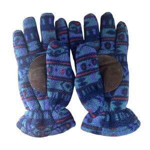 Eastern Mountain Sports EMS Womens Sz S Aztec Print Fleece Gloves Soft Warm VTG
