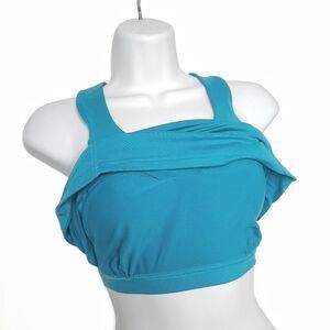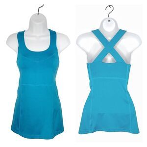 This beautiful blue athletic wear tank top from Eastern Mountain Sports is defined by a dual layer construction with a stretchy, breathable outer layer & a shelf bra inside. Scoop neckline with thicker straps that criss cross over the back, seamed in a flattering way! Made of 90% polyester 10% spandex, stretchy & comfortable in the best way! Size XS, approx measurements below. In EUC, SF & PF home, ready to ship today!