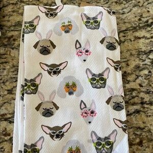 Cute Easter kitchen towels with multiple breeds of dogs, including Pugs, Poodles, Bull Terriers, and Frenchies.