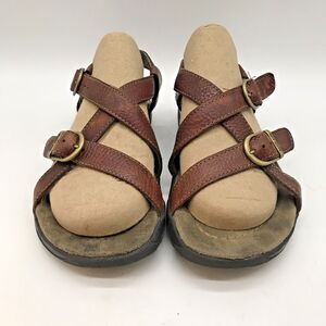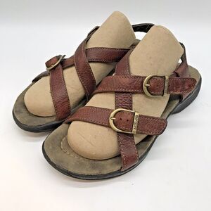 Eastland Brown Leather Ankle Strap Sandals Women's 7.5 Double Buckle Shoes