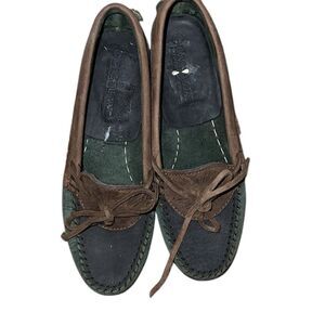 Eastland Brown and Green Moccasins with Soft Leather Decorative Lace Size 7 M