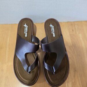 Brand new without tags or box Eastland Laurel wedge sandals. Footbed is memory foam, uppers are brown leather, and heel is 2.5 inches. Size is 9M. I purchased these and only wore them to try on for fit.