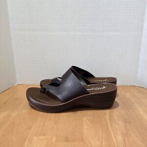 Eastland Laurel Wedge Leather Sandals Memory Foam Footbed Brown Size 9M NWOT