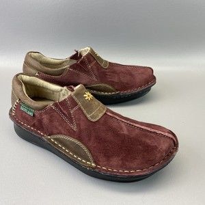 Eastland Roll Call Women's 7M Burgundy Suede Leather Clog Wedge Loafer Shoes
