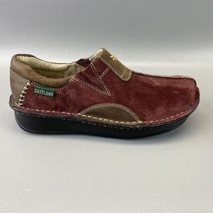 Eastland Roll Call Women's 7M Burgundy Suede Leather Clog Wedge Loafer Shoes. Great looking condition. Please look at the pictures for the actual condition. Comes with what's pictured and nothing more. You are buying what is pictured and nothing more. Any and all questions need to be asked prior to purchase. These are the actual pictures of what you're purchasing. Please look. We have hundreds of other listings that might be of interest to you. FAST shipping!!! I Ship within 24 hours of cleared payment, the same day if I am able. (Excluding Weekends & Holidays). Items must be returned in the same condition as they were sold in. New items must have all tags attached and or sealed as pictured and described in the description. Sold New, Returned New. No Exception to this. Any additional cost for international shipping is solely the buyers responsibility.